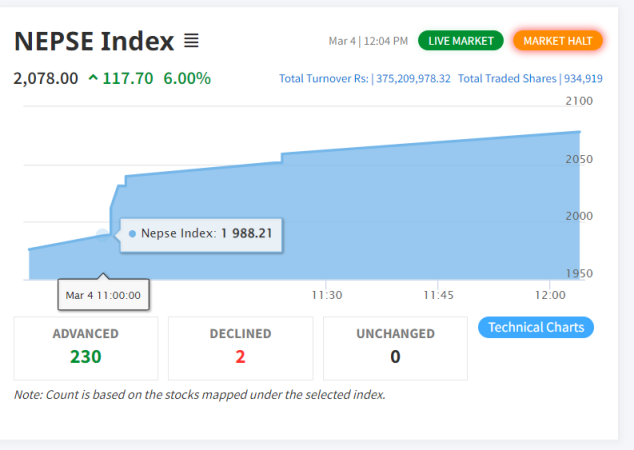 शेयर बजारमा तेस्रोपटक सर्किट ब्रेक,आजका लागि कारोबार बन्द