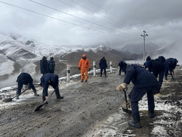 कागबेनी —मुक्तिनाथ सडकमा थुप्रिएको हिउँ पन्छ्याउँदै सुरक्षाकर्मी